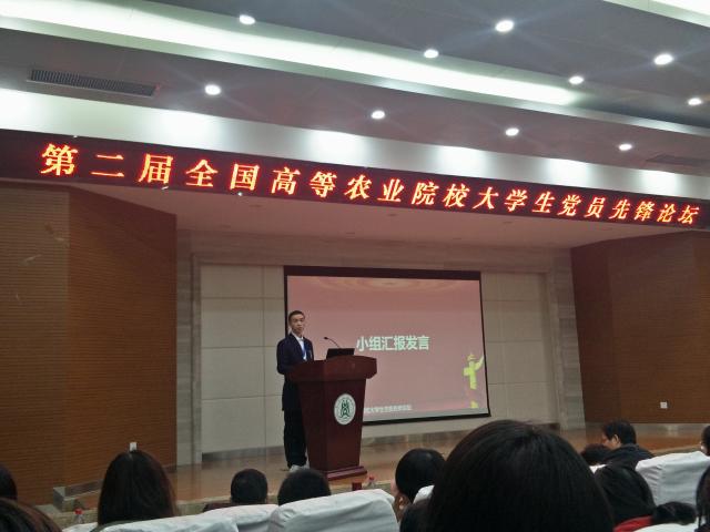日前,由华中农业大学举办的第二届全国高等农业院校大学生党员先锋论坛在武汉举行。来自全国25所农业高校的31名大学生党员代表和部分带队教师参加了论坛。我院学生党总支组织委员方彬同学应邀参加此次活动并获得论文三等奖。
