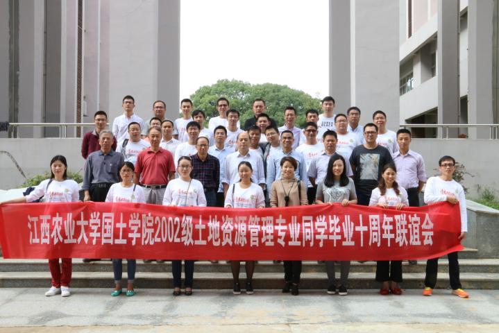 10月23日,我院2002级土地资源管理专业全体校友回母校开展毕业十周年联谊会,并在国土学院二楼会议室举行了师生座谈交流活动。学院院长李保同教授、院党委书记郭旭、院党委副书记赵刚、任课老师代表陈美球教授、牛德奎教授、周阳教授、蔡海生教授、周丙娟副教授及原国土学院团委书记陈家兴老师等出席座谈会。李保同院长代表学院致欢迎词并向校友们表达了深切的寄语。因班主任王景明老师外出无法参加座谈,陈家兴老师代为宣读了王老师对同学们毕业十周年聚会的致辞。周阳老师、陈美球老师代表任课老师发言,从如何延续同学情、走好人生路等方面表达了对校友们的殷切期望。校友们在聆听师长的谆谆教诲后,逐一向老师们汇报了各自毕业十年来的工作、家庭及生活等方面的情况,并表示一定会继续加强与学校的沟通与联系,特别是在毕业生实习和就业方面将给予母校的学弟、学妹们提供更多的帮助。随后,2002级土地资源管理专业全体校友们向国土学院赠送了一套乒乓球桌,以丰富老师们的业余生活,并向老师们赠送了“感谢师恩”毕业十周年特制纪念品。