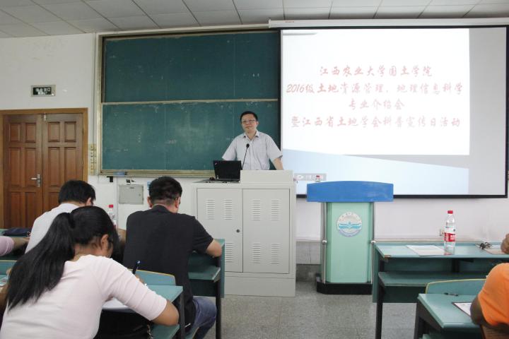 9月23日下午,江西省土地学会在江西农业大学国土资源与环境学院组织举办了国土知识科普讲座。江西土地学会副会长、江西农业大学副校长赵小敏教授作为主讲嘉宾,江西农业大学国土资源与环境学院土地资源管理教研室部分教师与学院土地资源管理专业、地理信息系统专业2016级全体新生一同聆听。赵小敏教授向大家讲述了我国土地保护的基本政策与相关知识,尤其对我国土地的利用现状以及我国实施的最严格的土地制度进行详细的介绍。赵校长还结合专业学习,建议同学们时刻关注土地相关的最新动态,了解最新的政策,关注学科发展方向。硕士生导师郭熙老师则鼓励同学们广泛学习专业有关知识,多参与实践类活动,密切关注土地政策的调整。通过本次科普讲座,同学们纷纷表示对自己的专业有了更深的认识,对国家的土地保护政策有了更深的认同。