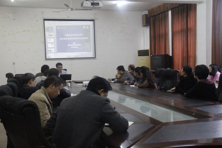 徐利老师以《当前教育信息化形势下混合教学改革的紧迫性与实现途径》为题,结合多年教育技术研究的经验,分析了新一轮教学信息化对高校传统课堂的挑战和机遇,提出了“混合教学”这一创新课堂改革的理念,并分别针对基础课和专业课例举了如何实施混合教学以及课堂效果评价等。报告会后,教师们积极与徐老师进行了交流。通过系列活动,大大提高了老师们的教学热情。