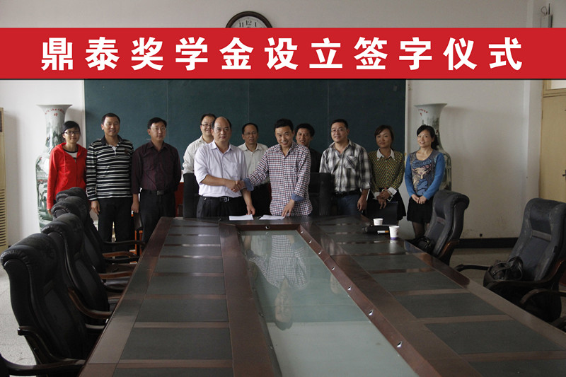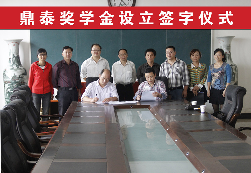 院长李保同和鼎泰公司总经理石的根代表双方签字。据悉,“鼎泰奖学金”首次签约有效期为三年,鼎泰公司每年提供壹万五千元作为奖学金,奖励土管、地信和农业水利等专业的优秀学子。