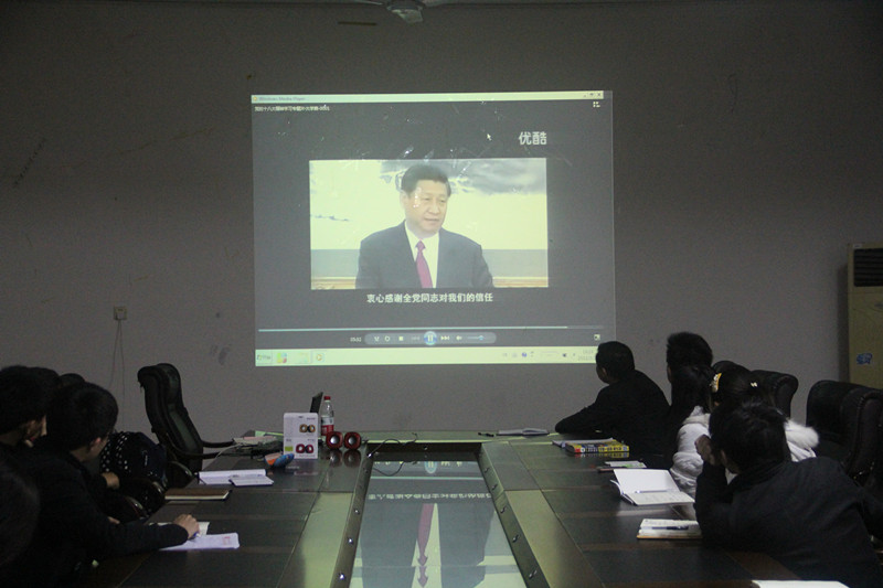 本报讯(李晶晶)3月24日晚7时,为学习宣传贯彻党的十八大精神,深入开展中国特色社会主义宣传教育,我院学生党总支和团委组织各班级团支书及全体学生党员在院办会议室观看了《党的十八大精神学习专题片·大学篇》。我院党委副书记黄新志和团委书记郭细根出席了本次活动。