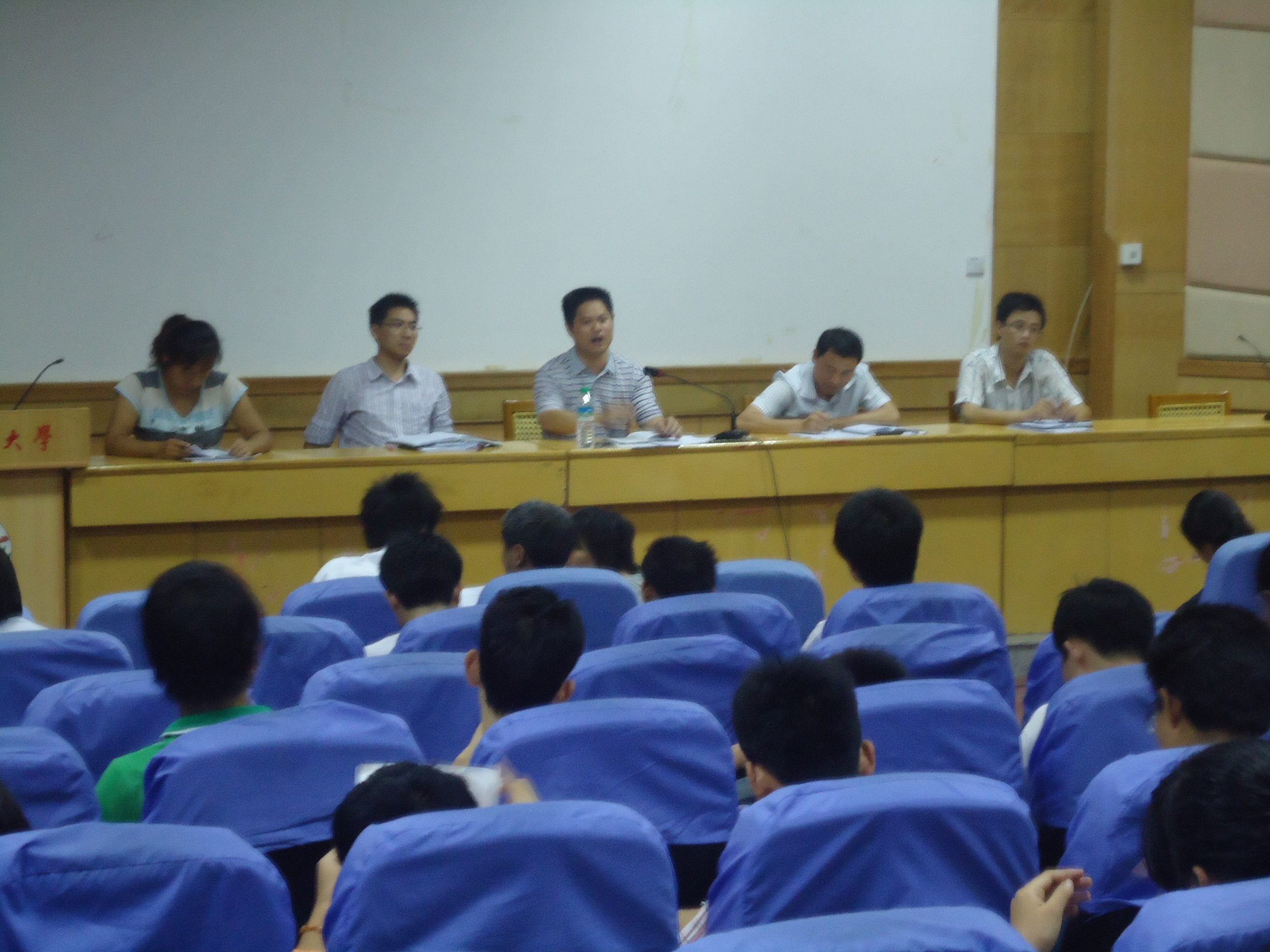 最后,蔡书记在对前面的讲话作出总结的基础上又提出了一些迎新工作的注意事项并向大家分别介绍了2011级新生各班班主任及辅导员。此外,还阐述了院里新学期的工作内容、工作的布置及一些工作设想等。在大会接近尾声时,蔡书记表达了他对同学们的热切期望,希望大家能以饱满的精神去对待迎新工作并一一落实到位。