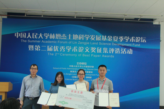 6月22日,2017级土地资源管理硕士研究生赖夏华奔赴中国人民大学参加“中国人民大学林增杰土地科学发展基金夏季学术论坛暨第二届优秀学术论文征集评选活动”进行相关主题宣讲,并荣获研究生组二等奖。