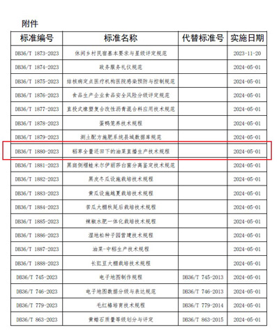 近日,江西省市场监督总局发布了江西省地方标准公告,实验室郭熙教授牵头编制的《测土配方施肥系统县域数据库规范》(DB36/T 1879-2023)正式发布,将于2024年5月1日起正式实施。