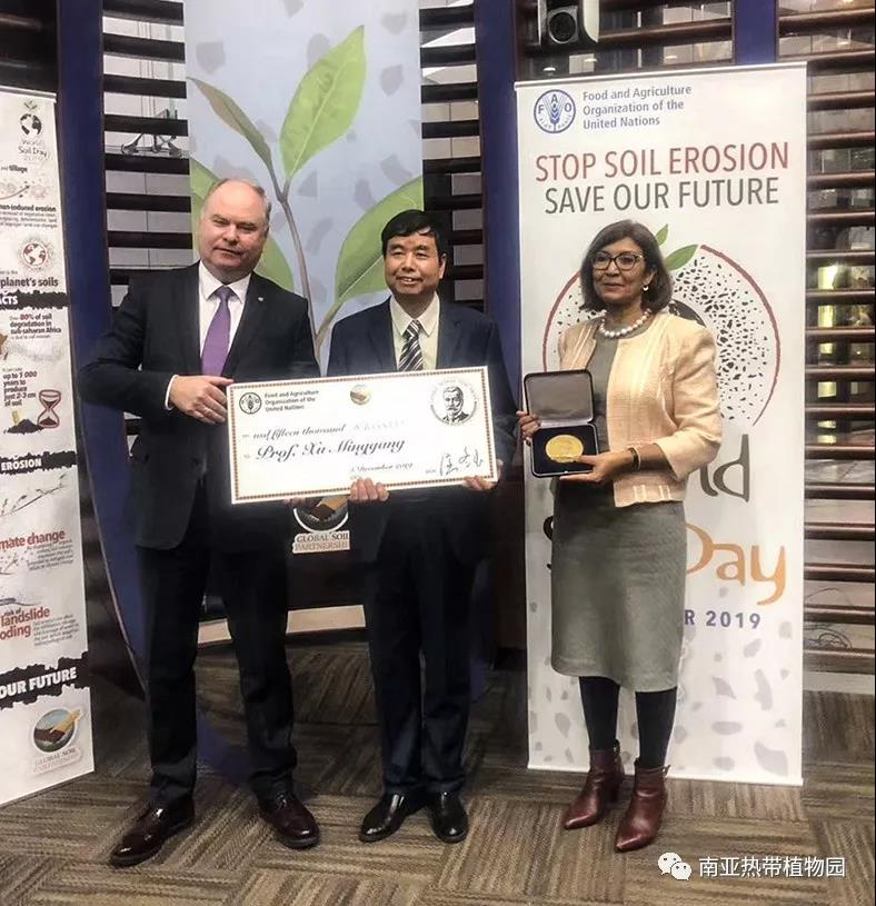 罗马时间12月5日下午,中国热科院徐明岗研究员获得世界粮农组织授予的“格林卡世界土壤奖”。中国热科院南亚所供图