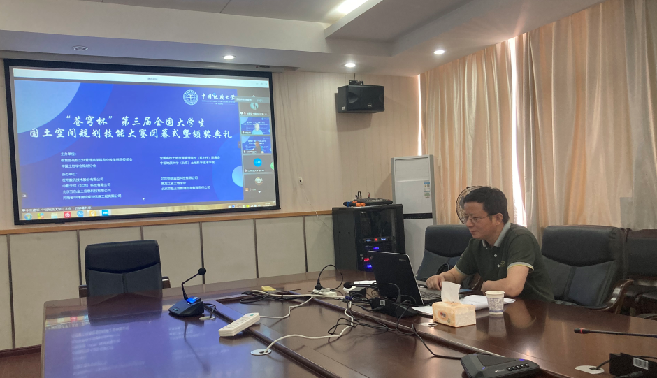 8月23日,由教育部高校公共管理类学科专业教学指导委员会联合全国高校土地资源管 理院长(系主任)联席会、中国土地学会主办和中国地质大学(北京)承办的“苍穹杯”第三届全国大学生国土空间规划技能大赛决赛通过网络会议举行。江西农业大学校长、鄱阳湖农业资源与生态重点实验室主任赵小敏教授、浙江大学土地与国家发展研究院院长吴次芳教授、自然资源部国土空间规划局孙雪东副局长、教育部高校公共管理教学指导委员会副主任、南京农业大学公共管理学院党委书记欧名豪教授等特邀嘉宾及评审专家、各高校师生共超过2200多人,线上参加此次大赛决赛。