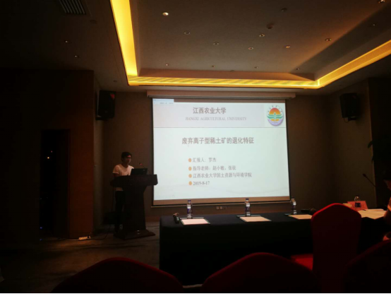 8月17日-18日,实验室张嵚老师、戴崴巍老师及19级准硕士研究生罗杰在长沙参加第十一次全国土壤生物与生物化学学术研讨会暨第六次全国土壤生态与健康学术研讨会。戴崴巍和罗杰分别做了题目为“凋落物对长白山阔叶红松林土壤微生物和土壤碳库的影响”和“信丰县某废弃离子型稀土尾矿的退化特性”的报告。